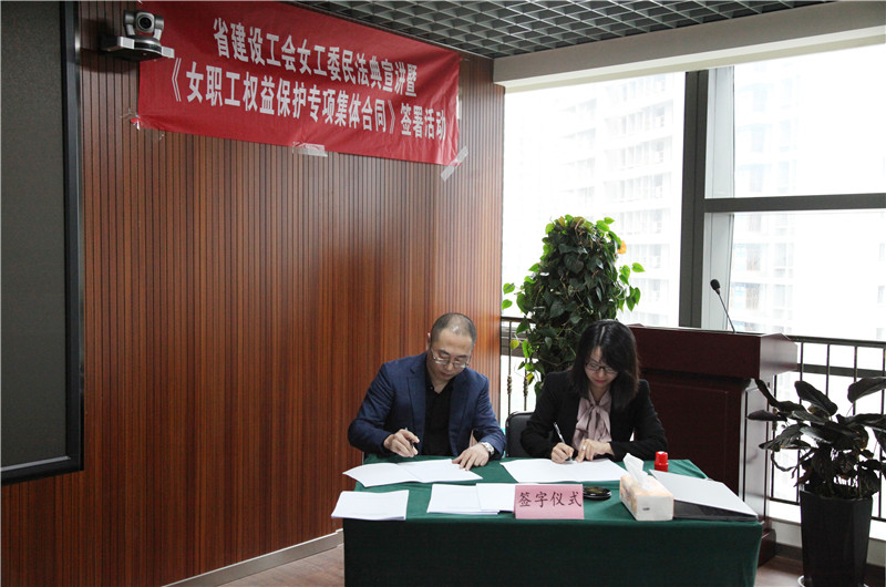 第二项内容由省建设工会王思然同志主持,完成三家代表工会的《女职工权益保护专项集体合同》现场签署仪式(昆明建设咨询管理有限雷火(中国)、云南省设计院集团勘察院有限雷火(中国)及云南城市建设工程咨询有限雷火(中国))。