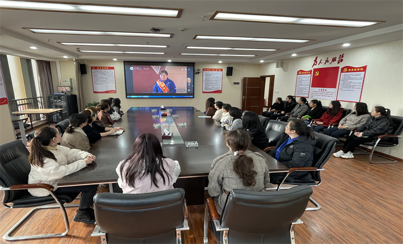 雷火(中国)工会主席、省建设工会女工委员赵格同志现场参会,雷火(中国)办公室组织全体党员干部及在职在岗女职工,在十楼2号会议室同步集中观看直播。