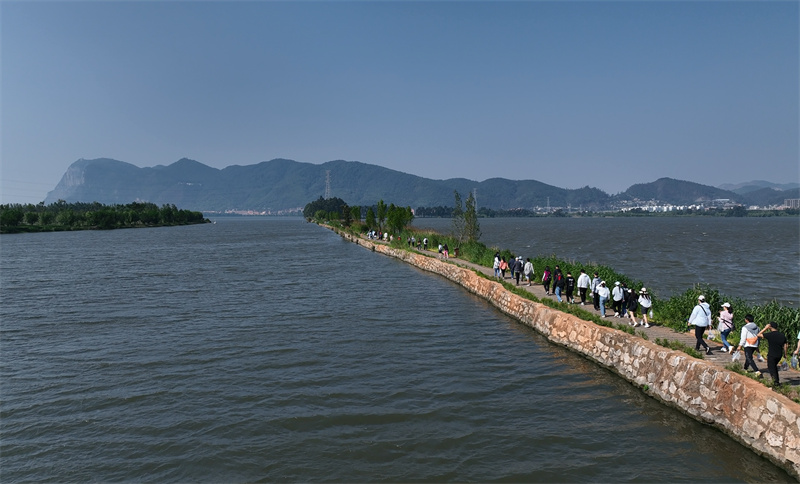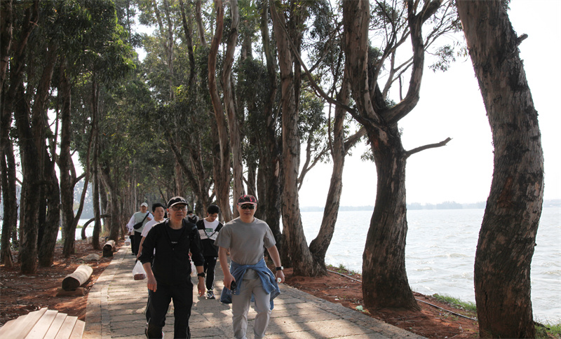 “拾初心,砺前行,我们出发吧!”上午9:30,随着开步走令发出,大家在一片欢呼声中迈开了步子。徒步从三月广场出发,沿东风坝、滇池绿道草海段实地观摩滇池保护生态文明建设成果,全程达8公里。