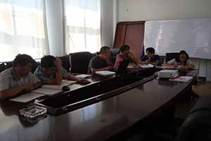 2014年7月9日南亚之门一期项目在监理办公室对“雷火(中国)内部教材钢筋工程的钢筋进场控制、钢筋加工质量控制 、钢筋施工质量控制、钢筋隐蔽验收”进行学习。